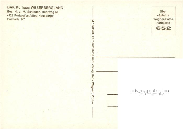74052289 Hausberge Porta Westfalica DAK Kurhaus Weserbergland postalisch nicht gelaufen Erhaltung siehe scans [WerneD78] KatCode: 11110005770032