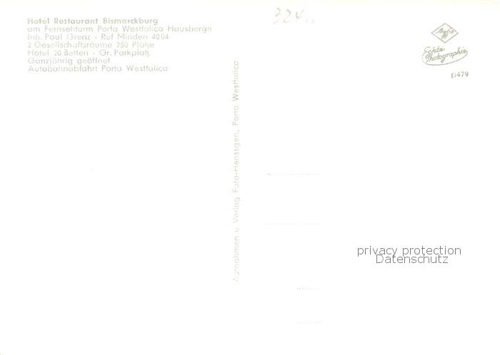 73846047 Hausberge Porta Westfalica Hotel Restaurant Bismarckburg Fernsehturm postalisch nicht gelaufen Erhaltung siehe scans [WerneD78] KatCode: 11110005770032