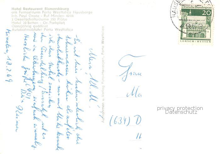 73846048 Hausberge Porta Westfalica Hotel Restaurant Bismarckburg Fernsehturm postalisch nicht gelaufen Erhaltung siehe scans [WerneD78] KatCode: 11110005770032