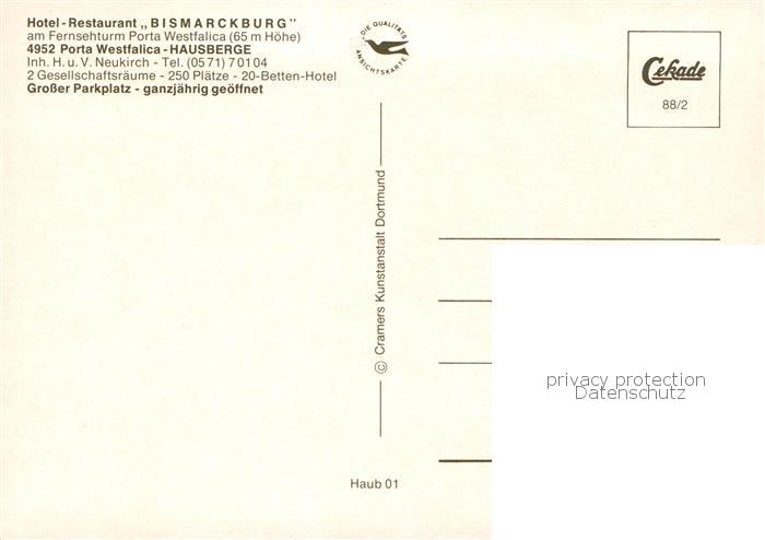 74052290 Hausberge Porta Westfalica Hotel Restaurant Bismarckburg Terrasse Gesellschaftsraum Hotelzimmer postalisch nicht gelaufen Erhaltung siehe scans [WerneD78] KatCode: 11110005770032
