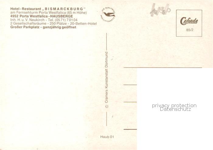 73846046 Hausberge Porta Westfalica Hotel Restaurant Bismarckburg Terrasse Speisesaal Hotelzimmer postalisch nicht gelaufen Erhaltung siehe scans [WerneD78] KatCode: 11110005770032