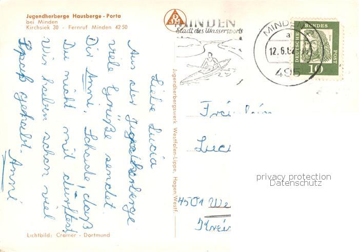 73832710 alte Postkarte Hausberge Porta Westfalica Jugendherberge Hausberge Porta postalisch gelaufen Erhaltung siehe scans [FriedD77] KatCode: 11110005770032