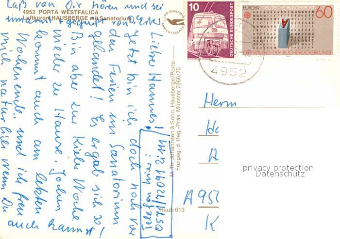 72850925 alte Postkarte Hausberge Sanatorium Fliegeraufnahme postalisch gelaufen Erhaltung siehe scans [NatalD47] KatCode: 11110005770032