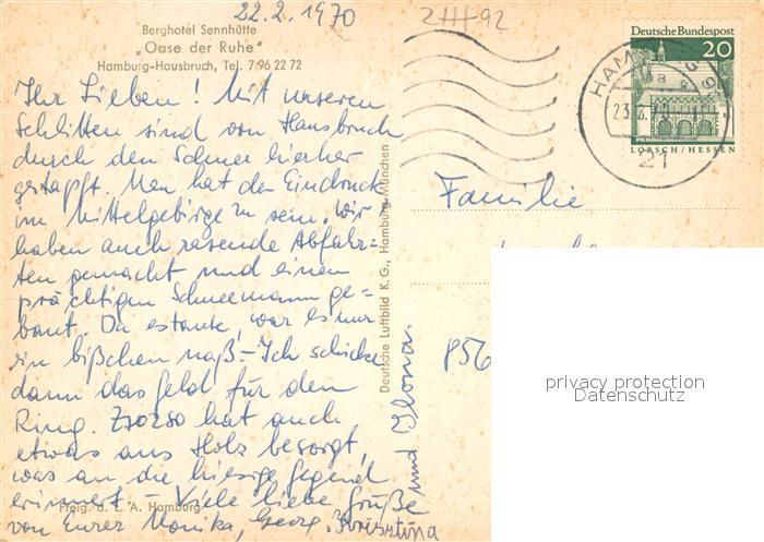 73714214 alte Postkarte Hausbruch Fliegeraufnahme Berghotel Sennhuette postalisch gelaufen Erhaltung siehe scans [LiesaD40] KatCode: 11110002000000