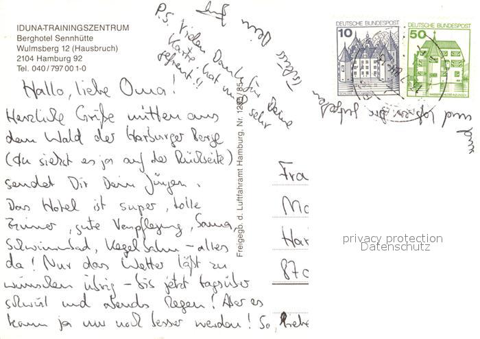 73305280 alte Postkarte Hausbruch Iduna Trainingszentrum Berghotel Sennhuette Fliegeraufnahme postalisch gelaufen Erhaltung siehe scans [FriedD77] KatCode: 11110002000000