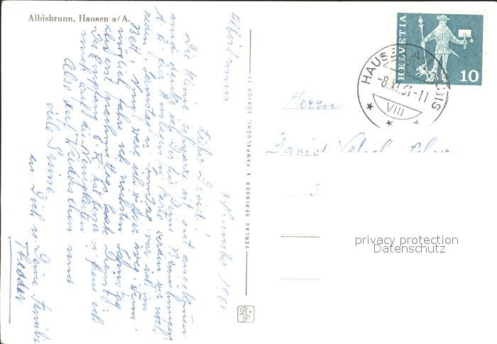 11658109 alte Postkarte Hausen Albis Albisbrunn postalisch gelaufen Erhaltung siehe scans KatCode: 11470260860044