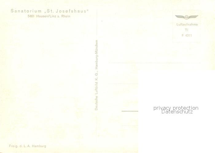 73028964 Hausen Linz Rhein Sanatorium St. Josefshaus Fliegeraufnahme postalisch nicht gelaufen Erhaltung siehe scans [PaolaD17] KatCode: 11110007138041