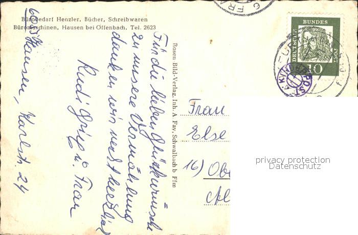 72098163 alte Postkarte Hausen Offenbach postalisch gelaufen Erhaltung siehe scans KatCode: 11110006438010