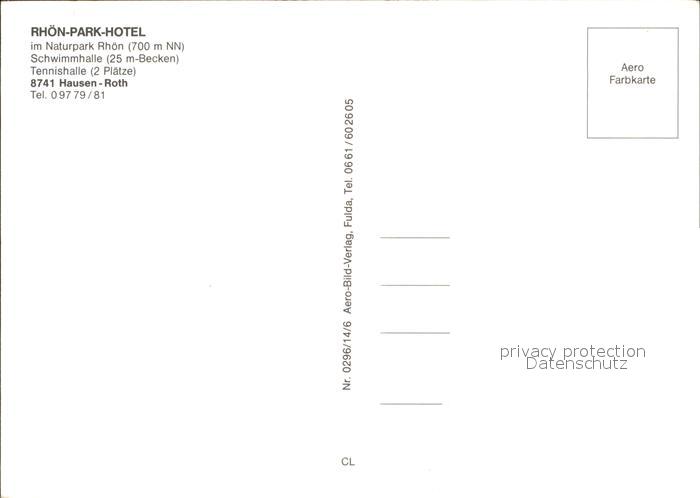 Hausen Rhoen Rhoen Park Hotel Frankenstube Appartement Rother Kamin Schwimmhalle Tennishalle Fliegeraufnahme postalisch nicht gelaufen Erhaltung siehe scans