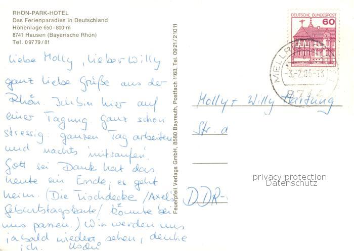 73055776 alte Postkarte Hausen Rhoen Rhoen-Park-Hotel postalisch gelaufen Erhaltung siehe scans [NatalD47] KatCode: 11110009673129
