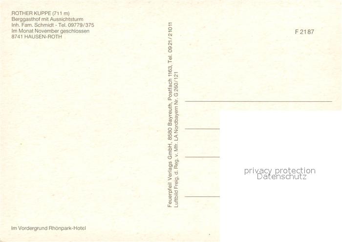 73634509 Hausen Rot Rother Kuppe Berggasthaus mit Aussichtsturm Fliegeraufnahme postalisch nicht gelaufen Erhaltung siehe scans [WerneD78] KatCode: 11110008127062