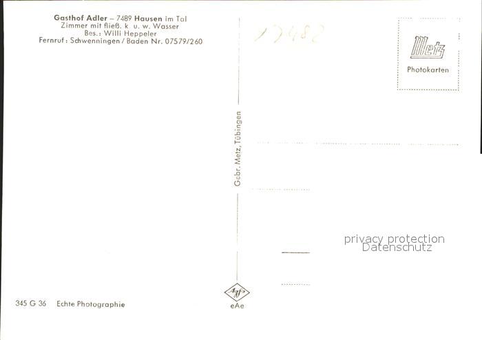 41767945 Hausen Tal Gasthof Adler Speisesaal postalisch nicht gelaufen Erhaltung siehe scans KatCode: 11110008437005
