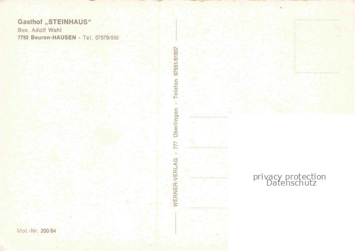 74104289 Hausen Tal Hausen Thal Beuron Gasthof Steinhaus Restaurant postalisch nicht gelaufen Erhaltung siehe scans [FriedD77] Frie Katcode 11110008437005