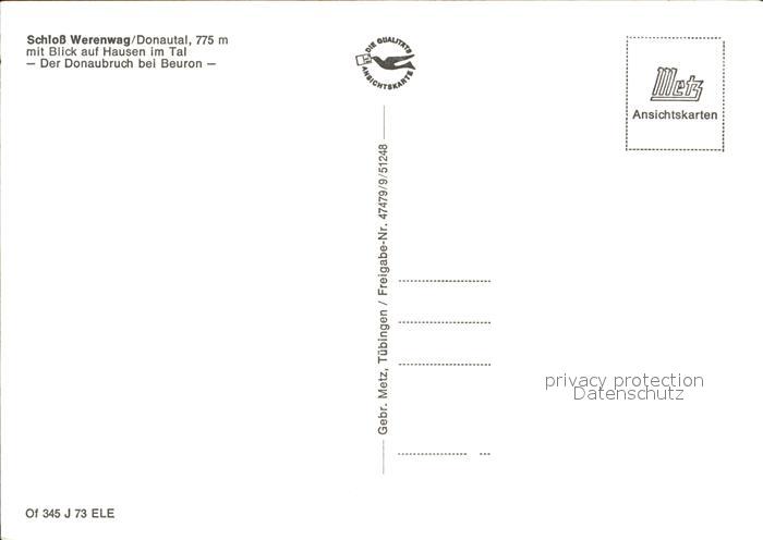 72463026 Hausen Tal Schloss Werenweg Donaubruch bei Beuron postalisch nicht gelaufen Erhaltung siehe scans KatCode: 11110008437005