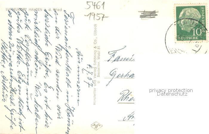 73706431 alte Postkarte Hausen Wied Ortsansicht postalisch gelaufen Erhaltung siehe scans [WerneD78] KatCode: 11110007138007