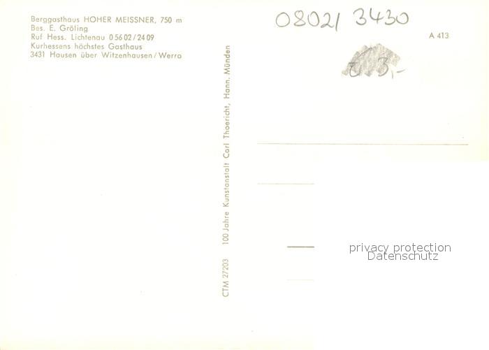 73165440 Hausen Witzenhausen Berggasthaus Hoher Meissner postalisch nicht gelaufen Erhaltung siehe scans [KathaD81] KatCode: 11110006636006