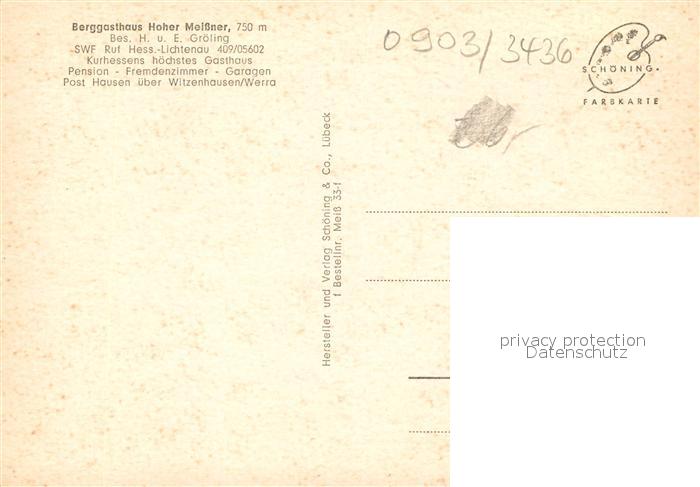 73165439 Hausen Witzenhausen Berggasthaus Hoher Meissner postalisch nicht gelaufen Erhaltung siehe scans [KathaD81] KatCode: 11110006636006