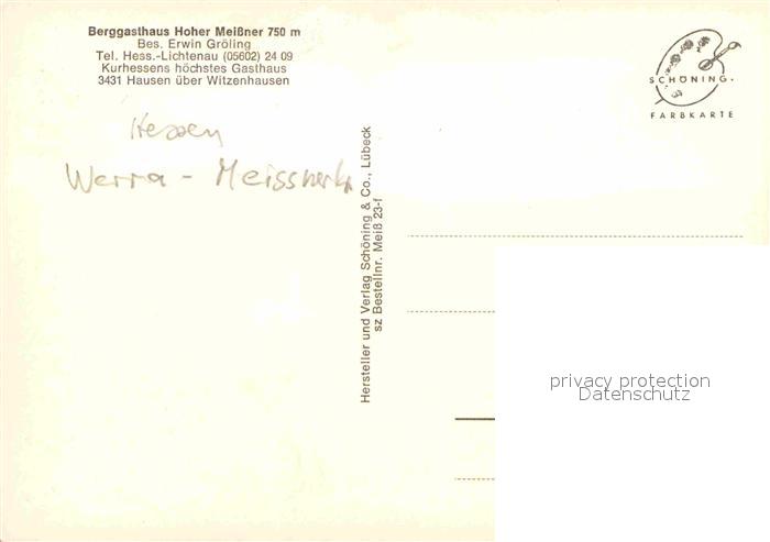 72917629 Hausen Witzenhausen Berggasthaus Hoher Meissner postalisch nicht gelaufen Erhaltung siehe scans [FriedD77] KatCode: 11110006636006