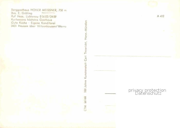 72797880 Hausen Witzenhausen Berggasthaus Hoher Meissner postalisch nicht gelaufen Erhaltung siehe scans [KathaD81] KatCode: 11110006636006