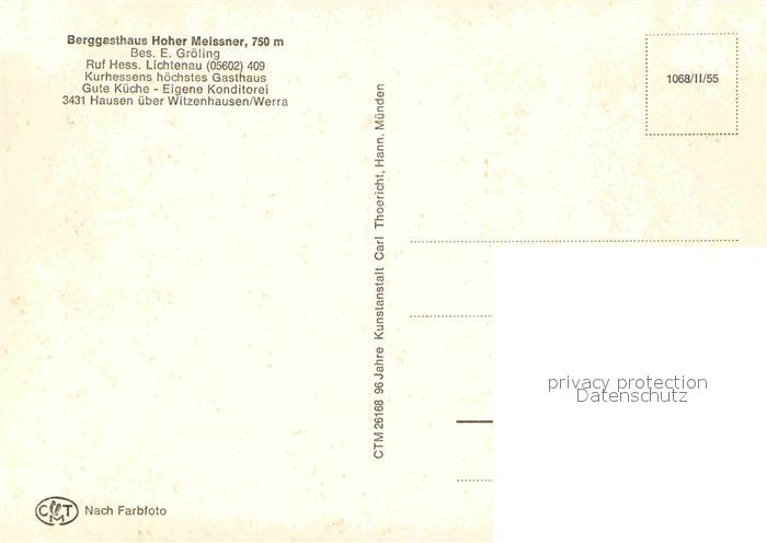 72665087 Hausen Witzenhausen Berggasthaus Hoher Meissner postalisch nicht gelaufen Erhaltung siehe scans [WerneD78] KatCode: 11110006636006