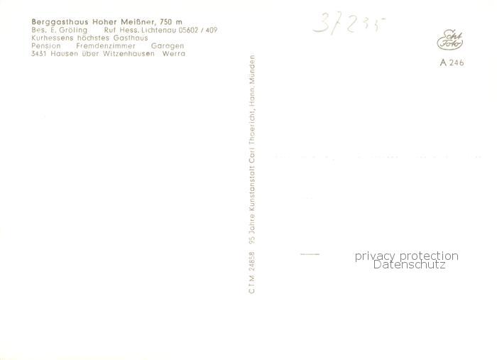 73763022 Hausen Witzenhausen Berggasthaus Hoher Meissner Koenig der hessischen Berge Landkarte Kompass postalisch nicht gelaufen Erhaltung siehe scans [FriedD77] KatCode: 11110006636006