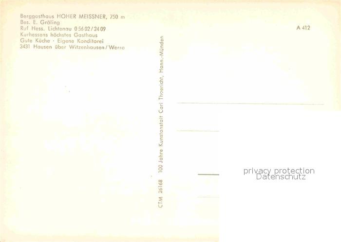 72836182 Hausen Witzenhausen Berggasthaus Hoher Meissner Sendemast postalisch nicht gelaufen Erhaltung siehe scans [FriedD77] KatCode: 11110006636006