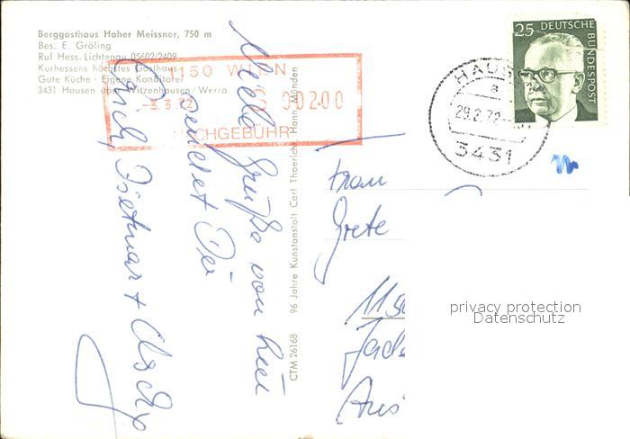 72496279 alte Postkarte Hausen Witzenhausen Berggasthaus Hoher Meissner Sendemasten postalisch gelaufen Erhaltung siehe scans KatCode: 11110006636006