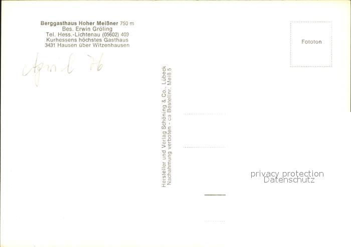 72534136 Hausen Witzenhausen Berggasthaus Hoher Meissner und Umgebung Landkarte postalisch nicht gelaufen Erhaltung siehe scans [FriedD77 kt118box] KatCode: 11110006636006