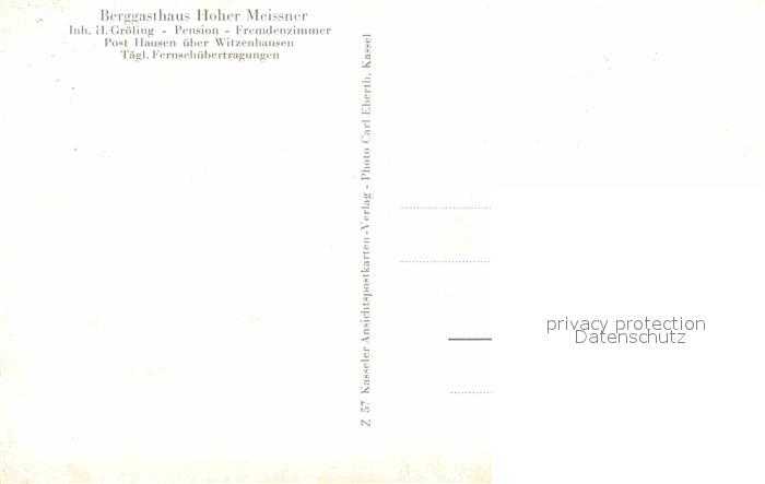 72825903 Hausen Witzenhausen Berggasthaus Hoher Meissner Werratal Frau Hollenteich postalisch nicht gelaufen Erhaltung siehe scans [PaolaD17] KatCode: 11110006636006