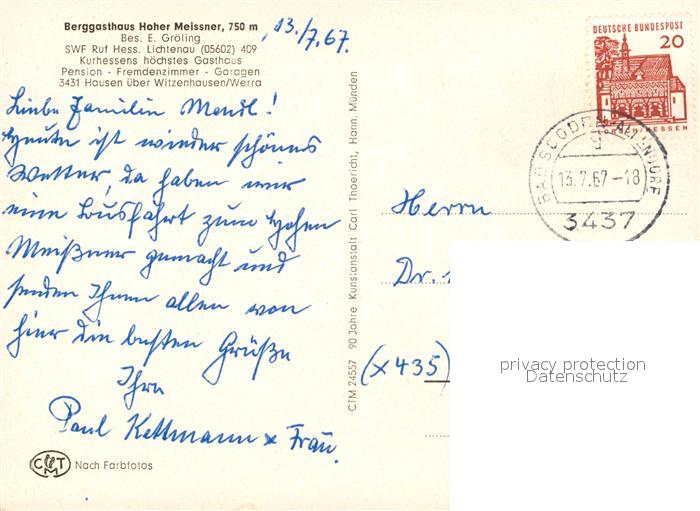 73205763 alte Postkarte Hausen Witzenhausen Berggasthaus Hoher Meissner postalisch gelaufen Erhaltung siehe scans [PaolaD17] KatCode: 11110006636006