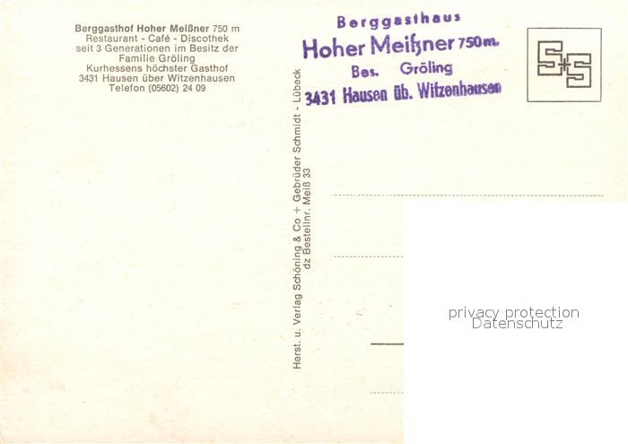 73267360 Hausen Witzenhausen Berggasthof Hoher Meissner Sender postalisch nicht gelaufen Erhaltung siehe scans [FriedD77] KatCode: 11110006636006