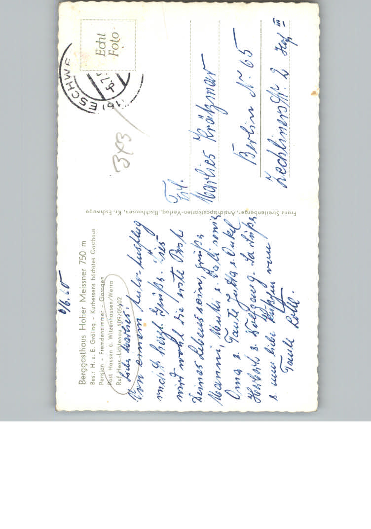31129546 Hausen Witzenhausen Gasthaus Hoher Meissner postalisch nicht gelaufen KatCode: 11110006636006
