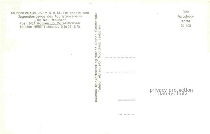 74111051 Hausen Witzenhausen Hessisch Lichtenau Hessen Meissnerhaus Ferienheim Jugendherberge Die Naturfreunde postalisch nicht gelaufen Erhaltung siehe scans [IrynaD87] KatCode: 11110006636006