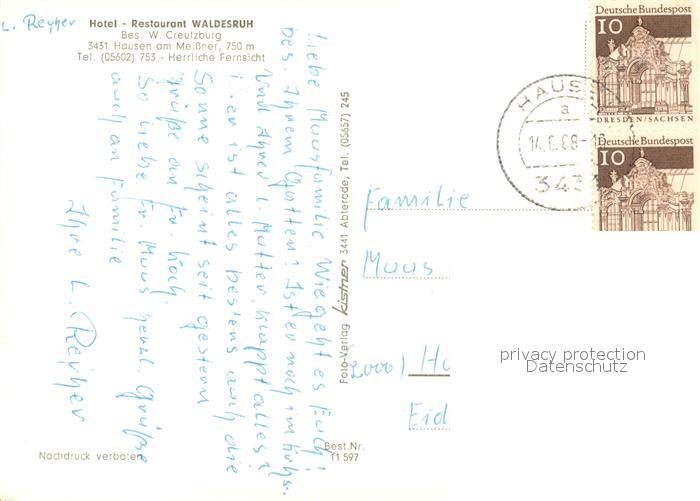 73739336 alte Postkarte Hausen Witzenhausen Hotel Restaurant Waldesruh Panorama Weiher Brunnen postalisch gelaufen Erhaltung siehe scans [WerneD78] KatCode: 11110006636006
