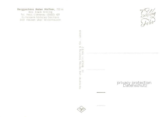 72948062 Hausen Witzenhausen Weiher Berggasthaus Hoher Meissner Wald postalisch nicht gelaufen Erhaltung siehe scans [FriedD77] KatCode: 11110006636006