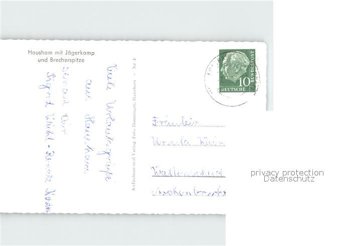 72198979 alte Postkarte Hausham Panorama mit Jaegerkamp und Brecherspitze Bayerische Voralpen postalisch gelaufen Erhaltung siehe scans KatCode: 11110009182119