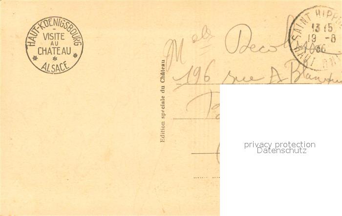carte postale Haut-Koenigsbourg Hohkoenigsburg Chateau Salle des Fêtes postalisch gelaufen Erhaltung siehe scans [FriedD77]