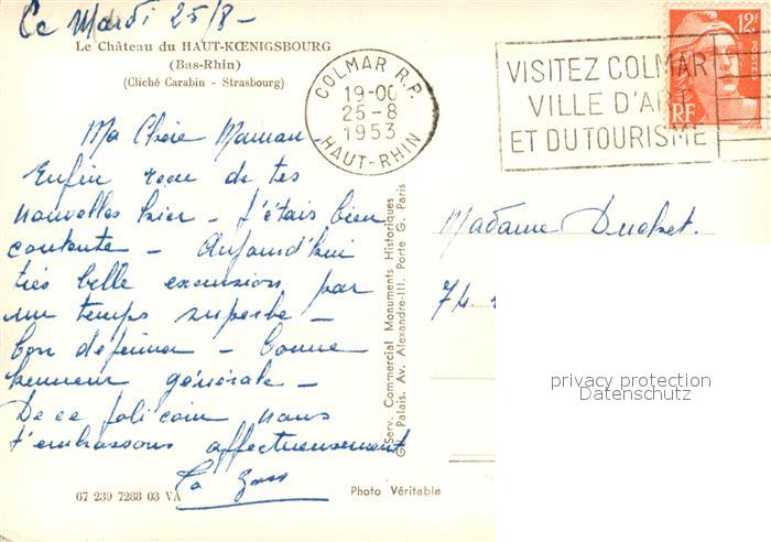 13582090 Haut-Koenigsbourg Hohkoenigsburg Chateau vue aérienne postalisch gelaufen Erhaltung siehe scans [FriedD77] carte postale Frie Katcode 11170067567362