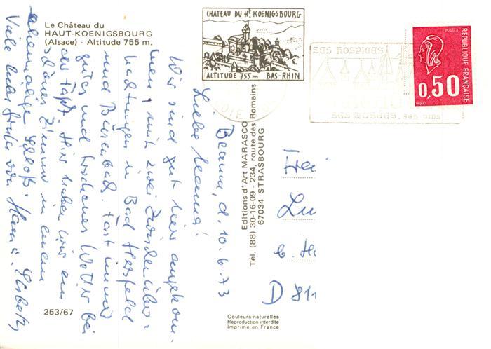 13948546 Haut-Koenigsbourg Hohkoenigsburg Château vue aérienne postalisch gelaufen Fliegeraufnahme Erhaltung siehe scans [FriedD77] Fliegeraufnahme carte postale Frie Katcode 11170067567362