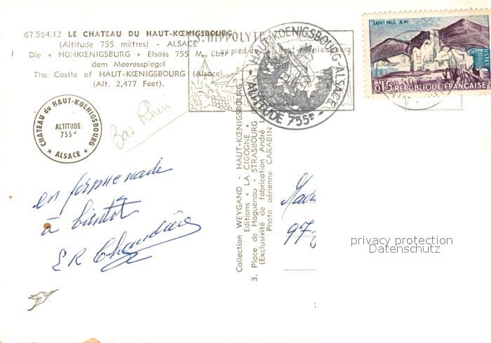 13593853 Haut-Koenigsbourg Hohkoenigsburg Le Chateau du Haut Koenigsbourg Vue aerienne postalisch gelaufen Erhaltung siehe scans [WerneD78] carte postale Wern Katcode 11170067567362