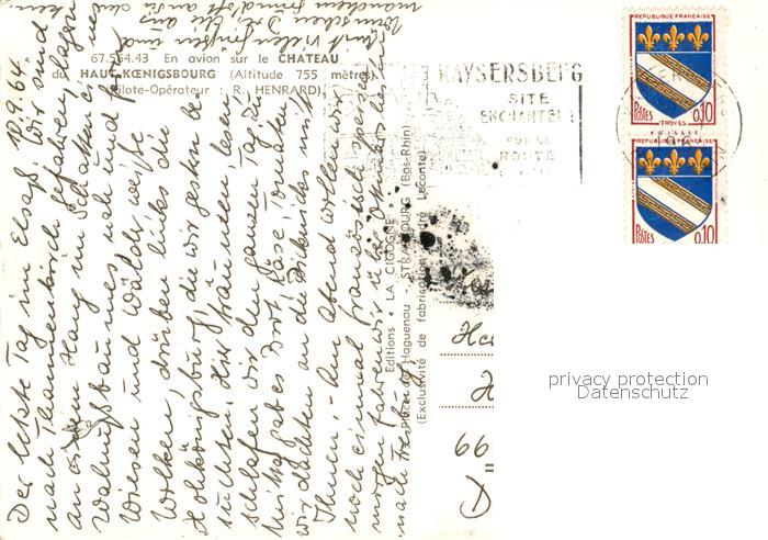 13244521 carte postale Haut-Koenigsbourg Hohkoenigsburg Vue aérienne postalisch gelaufen Erhaltung siehe scans [FriedD77] KatCode: 11170067567362