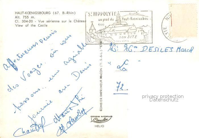 13617529 Haut-Koenigsbourg Hohkoenigsburg Vue aerienne sur le Chateau postalisch gelaufen Erhaltung siehe scans [WerneD78] carte postale Wern Katcode 11170067567362