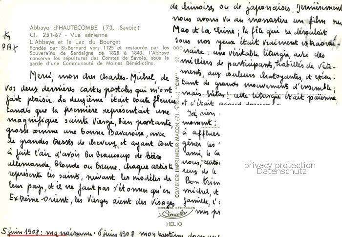 12872288 Hautecombe Abbaye et Lac du Bourget Kloster Fliegeraufnahme postalisch nicht gelaufen Erhaltung siehe scans [FriedD77] KatCode: 11170073273273
