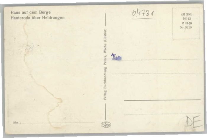 40623200 Hauteroda Haus auf dem Berge KatCode 11110016065031