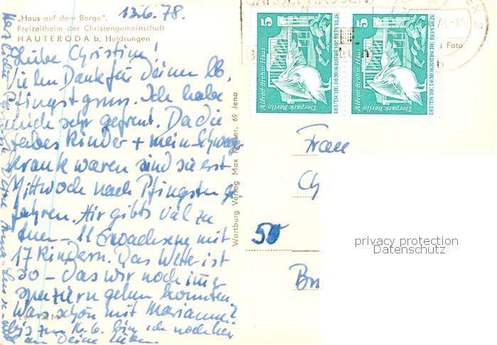 73870037 alte Postkarte Hauteroda Haus auf dem Berge postalisch gelaufen Erhaltung siehe scans [WerneD78] KatCode: 11110016065031