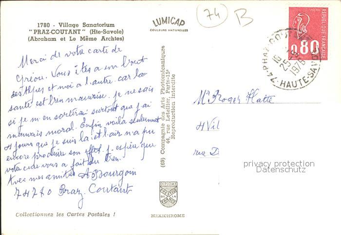 11905228 carte postale Hautes Savoie Village Sanatorium Praz-Coutant postalisch gelaufen Erhaltung siehe scans KatCode: 11170029429039