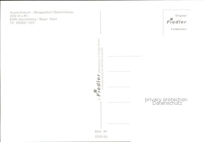 72614359 Hauzenberg Niederbayern Aussichtsturm Berggasthof Oberlichtenau postalisch nicht gelaufen Erhaltung siehe scans [LiesaD40] KatCode: 11110009275126