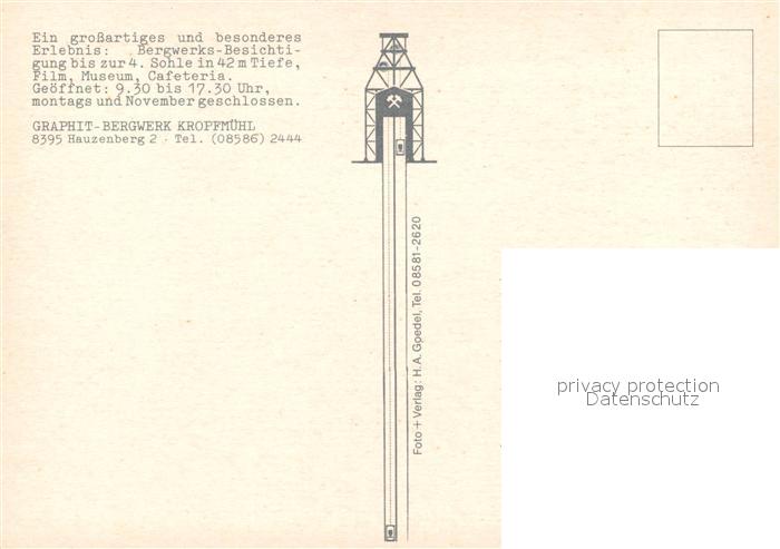 73324300 Hauzenberg Niederbayern Graphit Bergwerk Kropfmuehl Bergwerk postalisch nicht gelaufen Erhaltung siehe scans [FriedD77] KatCode: 11110009275126