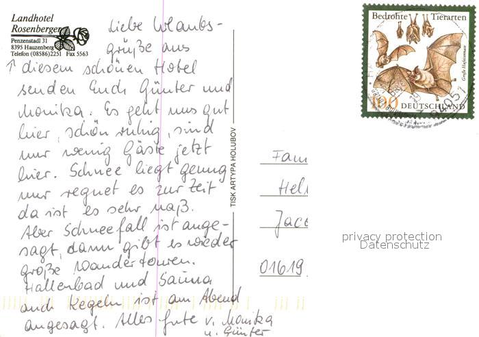 73725534 alte Postkarte Hauzenberg Niederbayern Landhotel Rosenberger im Winter postalisch gelaufen Erhaltung siehe scans [FriedD77] KatCode: 11110009275126