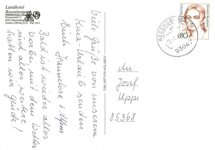 73880428 alte Postkarte Hauzenberg Niederbayern Landhotel Rosenberger postalisch gelaufen Erhaltung siehe scans [WerneD78] KatCode: 11110009275126